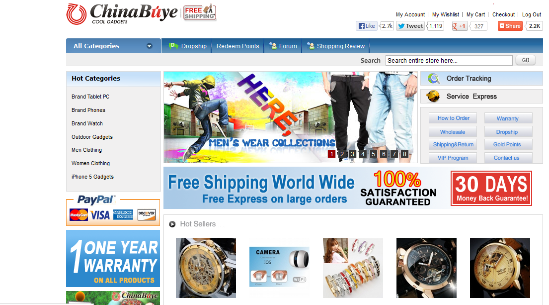 ChinaBuye.com Один из замых известных магазинов,выбор здесь по истине огромен,есть ВСЁ,компьютеры и телефоны,аксессуары и электроника,одежда на любой вкус и цвет,здесь можно купить как оптом ,так и в розницу,а самое главное это снова цены которые просто заставляют что то купить,а оплатить можно не только банковскими карточками и PayPal,но и всеми любимым Web Money