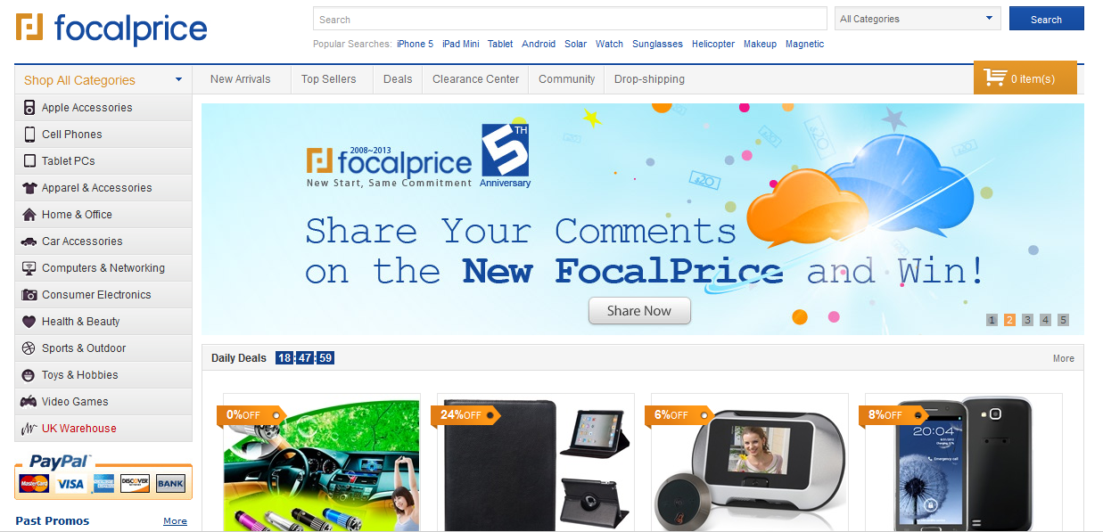 Focalprice.com стремится обеспечить лучший опыт онлайн покупки с десятками тысяч категорий, включая сотовые телефоны, цифровые фотоаппараты, MP3/MP4 плееры, лазеры и фонари, дома и садовая мебель, электронные аксессуары и многое другое. смартфоны и цифровые фотоаппараты по лучшим ценам. MP3/MP4 плееры: Найдите наибольшее скидку на MP3/MP4 плееров с большим объемом памяти и многофункциональных возможностей.По мимо стандартных оплат имеется Web Money